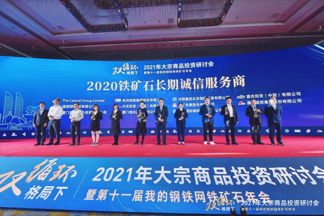 本次會議開幕儀式上,廈門信達(dá)憑借在鐵礦行業(yè)中的多年耕耘和誠信經(jīng)營,獲得“2020鐵礦石長期誠信供應(yīng)商”、“2020鐵礦石優(yōu)質(zhì)基差服務(wù)商”兩項榮譽稱號。