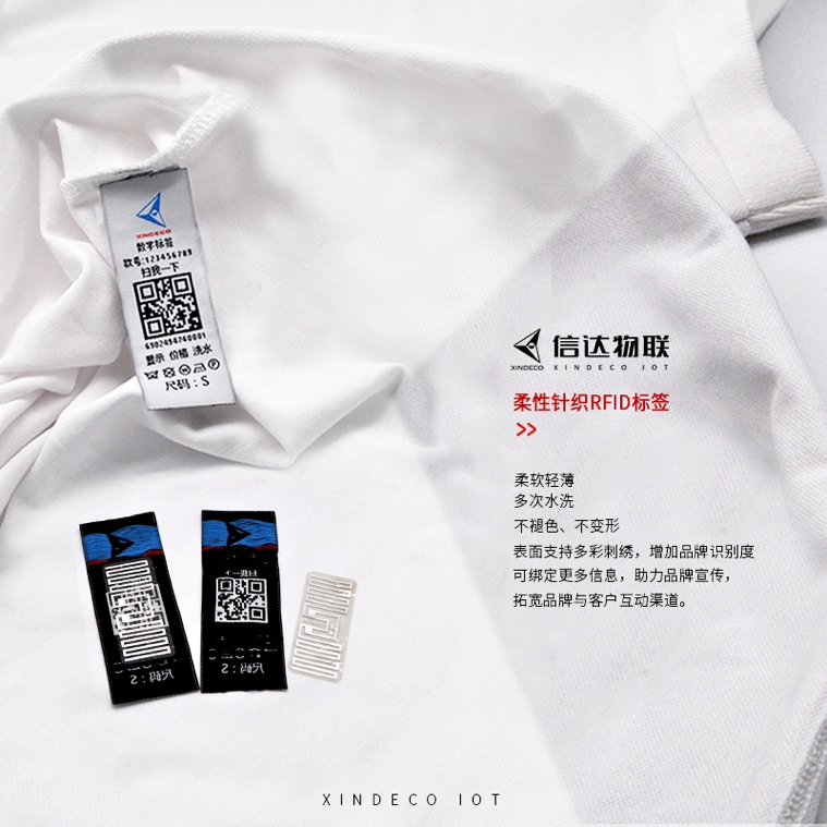 3、相較于傳統(tǒng)的RFID洗嘜,信達(dá)物聯(lián)二代柔性RFID標(biāo)簽更柔軟親膚,針織工藝可耐50次以上水洗不變形、不褪色,可伴隨產(chǎn)品長(zhǎng)期使用,終端消費(fèi)者可通過表面信息聯(lián)系品牌商,提高復(fù)購(gòu)率。