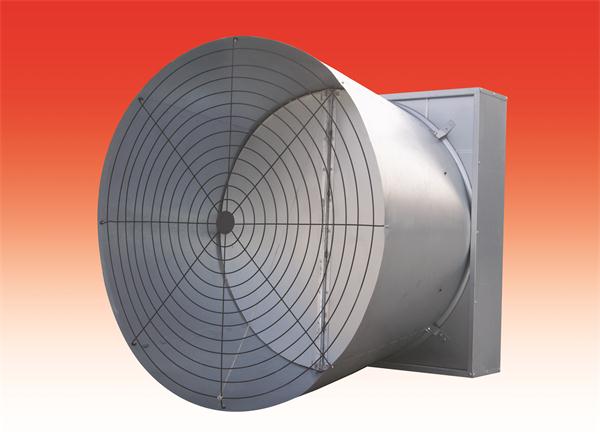喇叭口風(fēng)機(jī)是在50′標(biāo)準(zhǔn)風(fēng)機(jī)的基礎(chǔ)上衍生開發(fā)的具有更強(qiáng)功效的風(fēng)機(jī)。帶攏風(fēng)筒的設(shè)計能增大禽/豬舍負(fù)壓,