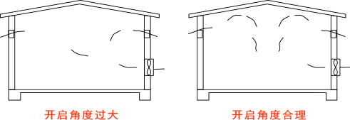 ▲靠近風(fēng)機的側(cè)風(fēng)窗開啟角度較小,遠離風(fēng)機的側(cè)風(fēng)窗開啟角度較大,確保風(fēng)量均勻;安裝要求:側(cè)風(fēng)窗洞口尺寸要標(biāo)準(zhǔn)規(guī)范,墻體平整光滑,一側(cè)洞口要在同一直線上;洞口內(nèi)側(cè)加裝木條,以利固定側(cè)風(fēng)窗,側(cè)風(fēng)窗安裝完畢應(yīng)打密封膠。